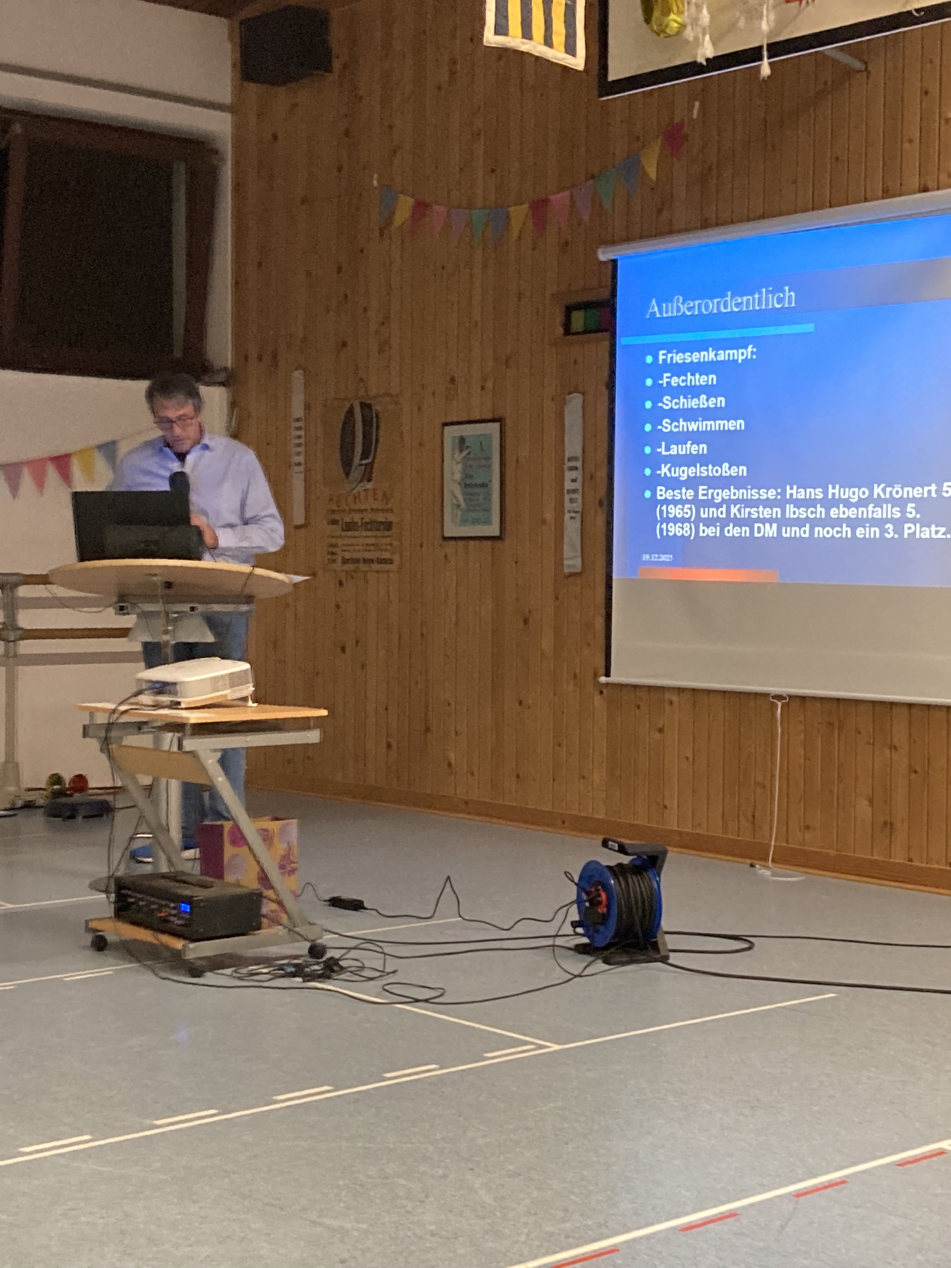 Im Anschluß an die zunächst durchgeführten Vereinsmeisterschaften begrüßte der Vorsitzende Mark-Oliver Kraft die zu der kleinen Feierstunde erschienenen etwa 80 Vereinsmitglieder und Gäste. In seiner Ansprache blickte er auf die lange Vereinsgeschichte zurück und betonte dabei neben den internationalen Erfolgen vor allem die guten Verbindungen zu Vereinen in Skandinavien und die langjährige, herausragende Jugendarbeit.